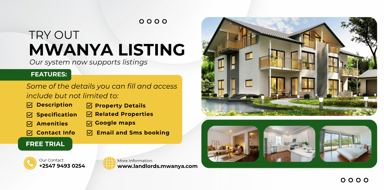 At Mwanya Landlords, we believe managing your properties should be simple and stress-free. Whether you own a single plot or manage hundreds of units, Mwanya gives you the tools to collect rent automatically, track payments, handle maintenance requests, and keep your tenants and investors happy—all from one easy-to-use app. Built for the Kenyan market, Mwanya helps landlords save time, grow their businesses, and focus on what matters most.